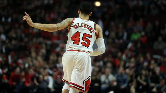 2016年夏季联赛的拉斯维加斯,公牛与森林狼的决赛战至最后一刻,凭借新秀瓦伦丁的三分球,公牛顽强地将比赛拖入加时,随后,他又在终场前0.8秒,投中绝杀球,用超级巨星的方式,为球队带来夏季联赛冠军,看着这位身着“45号”球衣的年轻人,芝加哥球迷仿佛看到篮球之神乔丹的身影。 瓦伦丁可不是什么寂寂无名之辈,他在NCAA的表现外界都有目共睹。 大学最后一年,瓦伦丁打出史诗级的表现,31场比赛,场均能得到19.2分、7.5个篮板和7.8次助攻,是NCAA历史上,首位场均19+7+7的球员,凭借这样的表现,他也让自己的荣誉室堆满各种奖项,比如朱利叶斯·欧文奖(即最佳小前锋奖)、卢特·奥尔森奖,美联社年度最佳球员、美国篮球教练协会年度最佳球员、大十联盟年度最佳球员。
