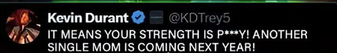 杜兰特回复道:“那你也太弱了,我看明年又一个单亲妈妈要来了。” 短短一句话,信息量爆炸。 这不仅是在调侃爱德华兹的言论,更是直接影射了他近年来多次被媒体曝出的私生子传闻。杜兰特这句评论,可谓“杀人诛心”——他用爱德华兹场外的真实争议,来回应其场上的“口嗨”,将话题的尴尬和讽刺程度直接拉满。