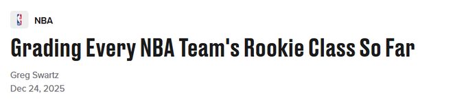 知名美媒Bleacher Report认为,是时候对联盟所有球队的新秀阵容开赛两个月以来的表现进行评级了。他们为30支球队的新秀进行评级(注:以球队为单位,所有数据和纪录均截至12月23日。火箭队是联盟中唯一一支阵容中没有新秀的球队。) 中国球迷最关注的肯定是开拓者的新秀评级,毕竟杨瀚森在这支球队效力。Bleacher Report为开拓者的新秀评级为D,算是比较糟糕的评分,具体点评如下——