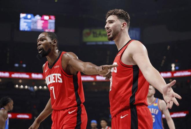 另外,范弗里特的受伤,确实也对火箭带来了巨大的负面影响,火箭本来就缺少控卫来组织串联,没了范乔丹更是雪上加霜,指望二年级新秀谢泼德来承担核心控卫的任务,有些不太现实,阿门汤普森能打1号位,但基本不具备什么组织能力。正是因为范弗里特受伤后,火箭的进攻战术才变得越来越单一,乌杜卡不知道该怎么布置,球员在场上也不知道怎么打球了,杜兰特,申京,小史密斯三人轮流抡中距离。说句实话,杜兰特本赛季加盟火箭后,进攻状态仍然不错,防守效率甚至高居全队前三,他场均能拿到25分5篮板4助攻,投篮命中率51%。