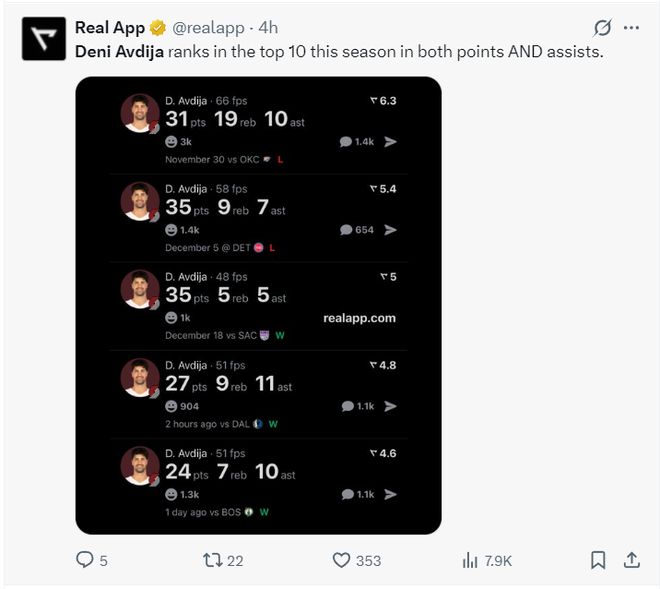 过去的四场比赛阿夫迪亚场均38.4分钟,拿到26.3分9.5助攻7.8篮板1.5抢断,命中率48.1%,他俨然打出了约基奇、东契奇、申京那样的数据,进攻、组织一把抓,欧洲运动员都如此的全面。