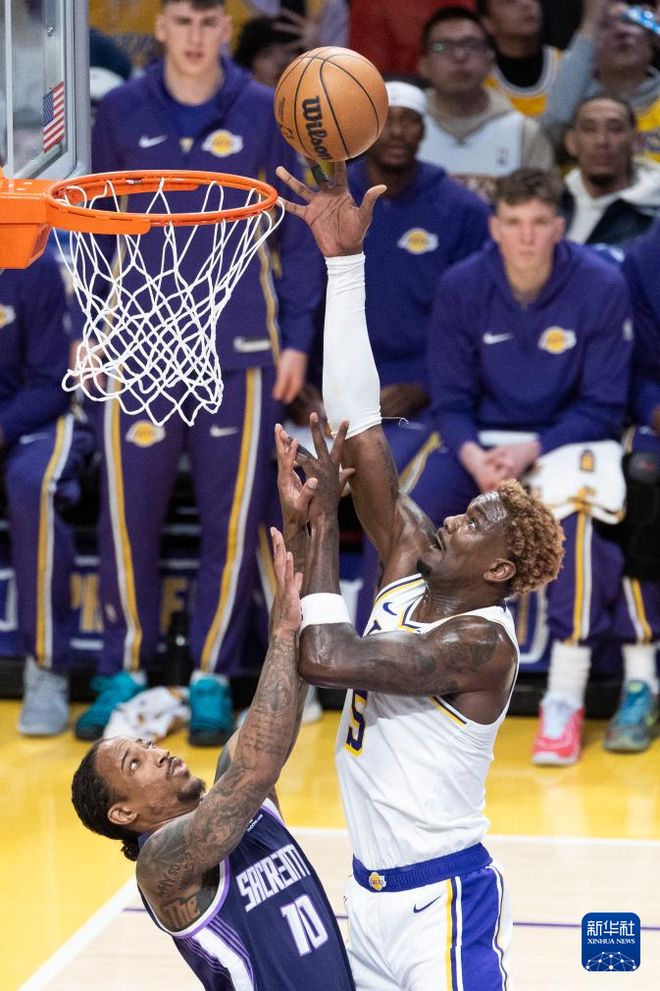 12月28日,湖人队球员德安德烈·艾顿(右)在比赛中上篮受阻。 当日,在2025-2026赛季NBA常规赛中,洛杉矶湖人队主场125比101战胜萨克拉门托国王队。 新华社发(赵汉荣摄) 12月28日,湖人队球员八村塁(右)在比赛中上篮受阻。 当日,在2025-2026赛季NBA常规赛中,洛杉矶湖人队主场125比101战胜萨克拉门托国王队。 新华社发(赵汉荣摄) 12月28日,湖人队球员卢卡·东契奇在比赛中庆祝投入三分球。 当日,在2025-2026赛季NBA常规赛中,洛杉矶湖人队主场125比101战胜萨克拉门托国王队。 新华社发(赵汉荣摄)