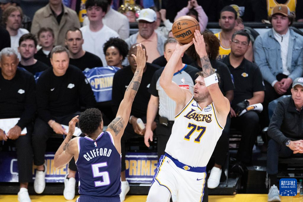 12月28日,湖人队球员卢卡·东契奇(中)在比赛中。 当日,在2025-2026赛季NBA常规赛中,洛杉矶湖人队主场125比101战胜萨克拉门托国王队。 新华社发(赵汉荣摄)