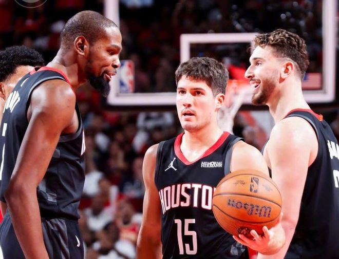 和快船一样,当火箭这里申京受伤后,球队活过来了。数据显示,过去两场比赛火箭摆出的阿门+伊森+杜兰特+小贾+亚当斯组合,进攻效率142,并且抢回了60%投丢的球,全队整体命中率53.8%。问题还要从大胜湖人一战说起,那场比赛,申京出战31分钟,7中5只拿到14分12篮板4助攻6失误,关键在于他的球权占有率只有19.8%。他持球权占比减少后,杜兰特和阿门火力全开。此后两场打骑士和打步行者,申京遭遇小腿伤势,亚当斯上位后,火箭彻底拦不住了。有一个数据,证明这支火箭到底多疯狂。