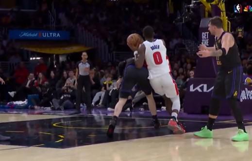 米勒说道:“看看卢卡现在的样子。卢卡,稍微挪动一下脚步,帮忙防守一下是可以的。但他做了什么?他只是举起双手。如果是我,我会很失望。” 在这个回合中,活塞中锋杜伦碾着拉拉维亚强突篮下,此时在侧翼站位的东契奇并没有选择协防,只是目送杜伦攻筐,并摊开双手示意裁判杜伦进攻犯规。最终裁判未予吹罚,杜伦顺利得分。 |