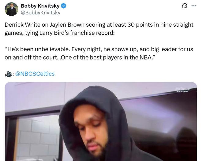 结果布朗硬是不认命,持续交出高分表现,也让身旁其他球员看到了赢球的希望,随着怀特等球员先后找到比赛状态,凯尔特人也快速扭转局面重返东部顶级球队行列。