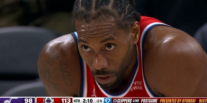 在这之后,小卡显然是非常生气,带着面部的血迹,随后一人独砍17分。在末节,小卡独砍20分,在脸被抠出血之前进了一个三分球,凭借着出色的表现,莱昂纳德直接将比赛打花。