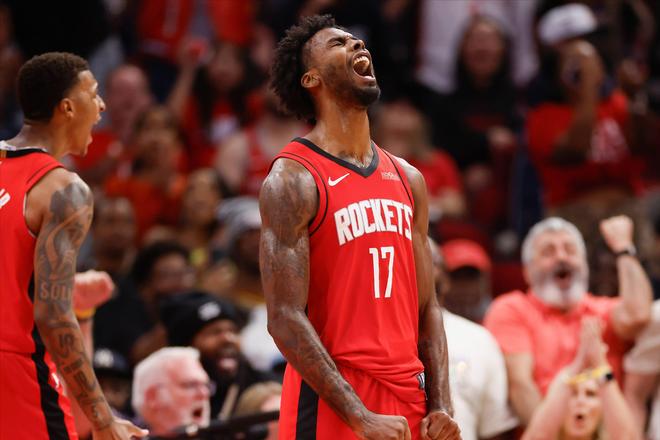 毫不夸张的说,伊森带来的防守与进攻影响力对于火箭队来说是战略级别的存在,他的存在激活了阿门等一众核心球员,让他们获得更好的攻筐机会与出手空间,过去8场阿门场均数据飙升至20+7+5,真实命中率高达68.8%。
