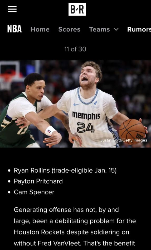 美国媒体《露天看台》还为火箭队列举了三个可以引进的控卫对象,因为范弗利特大概率要赛季报销了,第一个是雄鹿的罗林斯、第二个是凯尔特人的普理查德,第三位是灰熊队的卡姆-斯潘塞,如果能交易得到他们其中之一火箭的硬实力还能提升。 |