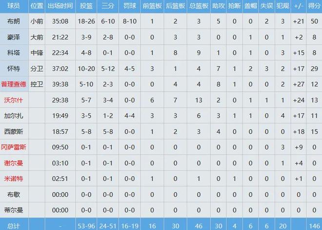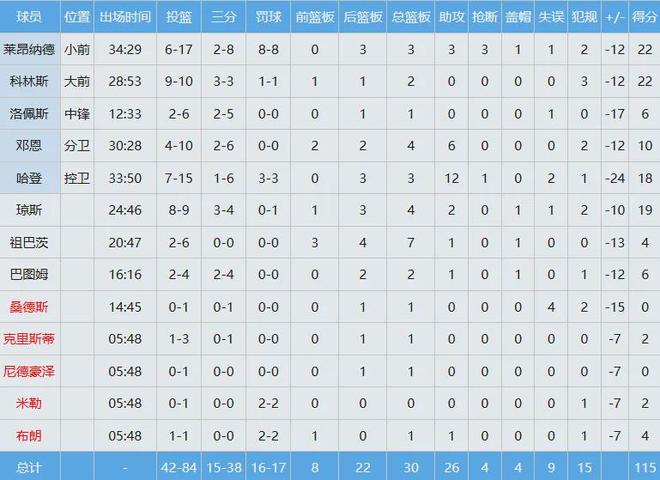 尽管很尴尬,可不能把输球的锅全部甩到祖巴茨身上,人家本场打的替补,快船全队数据如下: