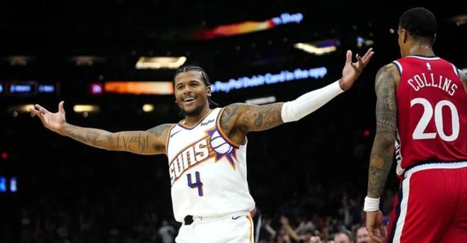 截至目前,他生涯得分表现最好的是2022—23赛季,他出战76场比赛,场均贡献22.1分。 他生涯至今的单场最高分,则是在2024—25赛季创造。在火箭对阵灰熊的比赛中,他全场出战40分钟,18投13中(三分6中5),拿到了42分。 去年休赛期,为了冲击更好的成绩,火箭将格林作为筹码换来杜兰特。加盟太阳的格林可谓流年不利,仅出战两场便再度受伤缺阵。太阳主帅在新闻发布会表示:格林将会在一月中旬左右复出。