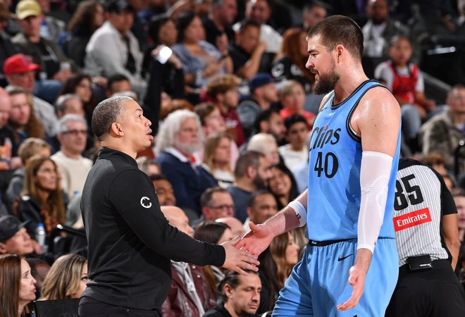 做个对比就明白了,如果是大洛或者巴图姆来挡拆,对手一定不敢轻易放挡拆人。因为但凡漏一点,他们直接扔三分,不管进不进,机会出来,就证明是一次失败的防守。但只要是祖巴茨挡拆,对手可以肆无忌惮黏在小卡身上,因为祖巴茨离开篮下,他就没任何出手能力了!祖巴茨复出后快船惨败凯尔特人一战,赛后哈登就有些不满:为祖巴茨回归感到开心,但很明显,你们知道我们需要解决一些事情,他是替补出场的,我们应该打出该有的表现。泰伦卢可以随便找个理由重用祖巴茨,比如提供护框,提供对位优势。