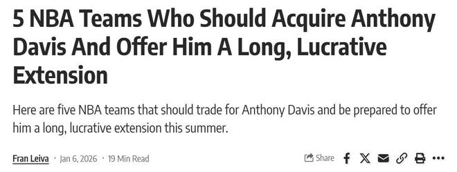 3年1.75亿,浓眉哥遭疯狂兜售!美媒晒5大下家候选:勇士位列第4