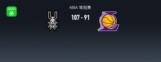 北京时间1月8日NBA 常规赛,圣安东尼奥马刺对阵洛杉矶湖人。本场双方均背靠背比赛,湖人詹姆斯缺阵。上半场双方展开防守拉锯战,马刺保持微弱领先,半场马刺48-43湖人,第三节马刺将分差拉大至两位数,末节湖人无力反扑,最终马刺107-91湖人。 圣安东尼奥马刺凯尔登-约翰逊27分6板,文班亚马16分14板1助;洛杉矶湖人东契奇38分10板10助,拉拉维亚16分7板1助。