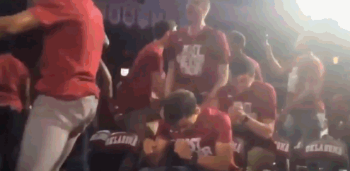当年NCAA锦标赛的分区对阵揭晓直播中,杨所在的俄克拉荷马大学处于晋级边缘,球队全程被镜头记录。当得知球队成功入围时,所有队员都起身相互庆祝——唯独杨没有。当然,他也很开心,但与众不同的是,队友们都围绕着他庆祝,而非与他一同庆祝,这一场景格外引人注目。