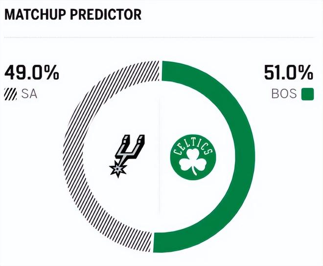 赛前,美媒ESPN对本场比赛进行了胜率预测,马刺队胜率为49.0% ,凯尔特人胜率则是51.0% ,算是平分秋色。