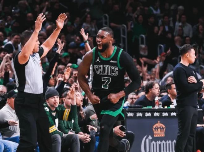 首节比赛,杰伦-布朗表现出色,外线多次迎射文班亚马,打满12分钟,投篮8中5,三分3中2,砍下12分2篮板3助攻。