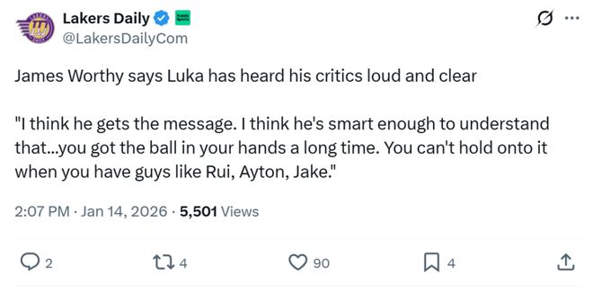 更加让人开心的是,连续出现失误后,东契奇在比赛中开始主动调整打法,让出一些球权与机会。 正如赛后湖人名宿沃西所说:“我想他已经明白了外界的质疑了,我认为他足够聪明,你不能长时间把球控制在自己手里,尤其是你身旁有八村、拉拉维亚、艾顿这些不错的队友时,你不能一直霸占球权。”