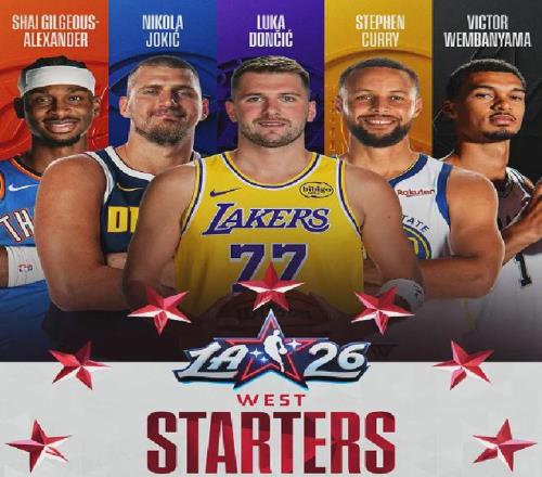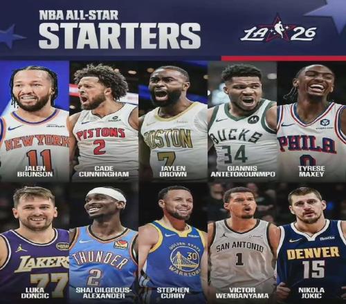 千呼万唤始出来,NBA全明星首发阵容如下: 西部:东契奇+约基奇+亚历山大+库里+文班亚马; 东部:布伦森+字母哥+马克西+坎宁安+杰伦-布朗。
