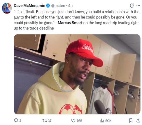 这场比赛斯玛特31分钟,9中4,三分6中3,罚球5中4,拿到15分2篮板1助攻0失误,命中率44.4%,三分命中率50%,正负值+5。赛后斯玛特接受采访被询问他朝着掘金替补席说了些什么?刚哥回答:他们说我投不进,我说我最近投的不错。