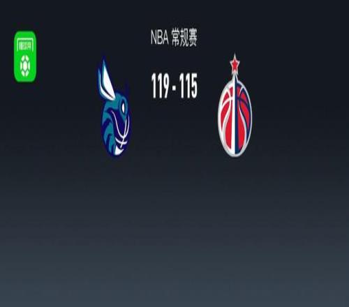 第一节黄蜂布兰登-米勒拿下10分,奇才凯肖恩-乔治拿下8分,首节战罢黄蜂35-34领先奇才 第二节黄蜂迈尔斯-布里奇斯拿下7分,奇才特雷-约翰逊拿下12分,半场结束黄蜂66-58领先奇才 第三节黄蜂布兰登-米勒拿下5分,奇才特雷-约翰逊拿下8分,第三节结束黄蜂93-81领先奇才 第四节黄蜂拉梅洛-鲍尔拿下7分,奇才亚历克斯-萨尔拿下9分,最终黄蜂119-115战胜奇才