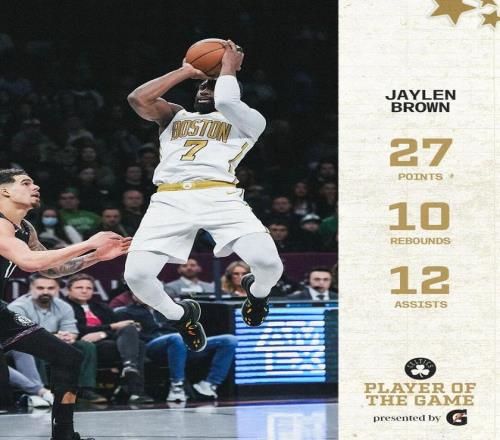 常规赛,凯尔特人130-126战胜篮网。 这场凯尔特人赢得是真不容易,双加时大战才艰难战胜对手,当家球星布朗全场交出27分10篮板12助攻,这也是布朗生涯的第五次三双。 但客观说,这场布朗的进攻并不出色,投篮只有27中9,罚球更是只有10中5,真实命中率仅为43%,但凡常规时间多进一个罚球,比赛都不至于被拖进加时。