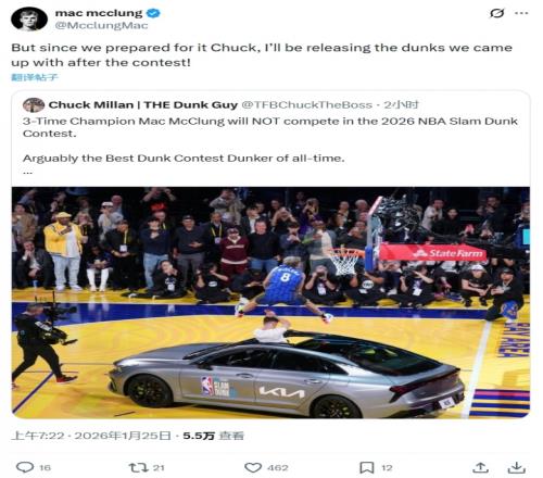 无意扣篮大赛4连冠!媒体人:麦克朗不会参加26年扣篮大赛