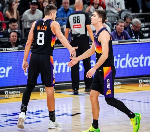 太阳本赛季能够打出远超预期的表现,愈发成熟的布克功不可没,他在牵制防守后的传球,是太阳能够打出流畅整体进攻的基石,此役在布克无法出战的情况下,太阳只能靠个人强打去终结,虽然前两节狄龙和阿伦得分都达到了两位数,但是全队总的助攻只有个位数,这也导致了命中率不高,只能带着10分的劣势,回到了中场更衣室。 重新回到赛场之后,太阳依旧只能靠狄龙和阿伦续命,不过没有布克牵制防守,让阿伦遇到了远超以往的防守强度,虽然全场砍下了18分,但是命中率并不高,只有18投4中的发挥,尽管狄龙手感不错,23次出手命中11球,交出了26+5+2+1+2的全能数据,可惜无力带动队友,让太阳只能接受输球的结局。