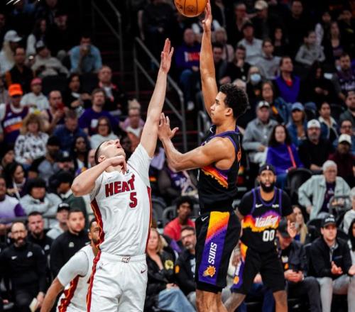 上赛季坐拥三巨头核心阵容,连一个季后赛名额都没有获得的菲尼克斯太阳,成为了球迷眼中的笑柄,在休赛期拆散三巨头,确立布克绝对核心地位之后,太阳完成了华丽的转身,成为了西部最让球迷惊喜的球队之一,前四十五场常规赛战罢,取得了27胜18负的战绩,高居西部积分榜第六。 这一个比赛日,太阳坐镇主场迎来了迈阿密热火的挑战,本场比赛失去双核的太阳,只能靠单打苦苦支撑,尽管狄龙状态不错,但终究是独木难支,眼睁睁看着热火以111-102从自己主场带走胜利。