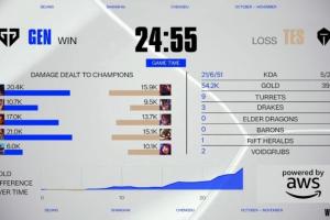 整场Bo3还不足一个小时GEN两局横扫TES仅耗时54分22秒