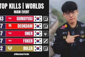 S15击杀榜:Gumayusi103断层第一deokdamOnerFaker并列第二