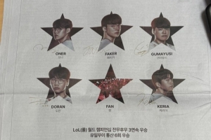 T1选手们登上韩国报纸:史无前例的三连冠独一无二总计六次夺冠