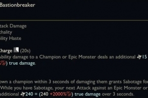 对英雄和史诗级野怪造成(15+75%穿甲)的真实伤害,冷却时间20秒。