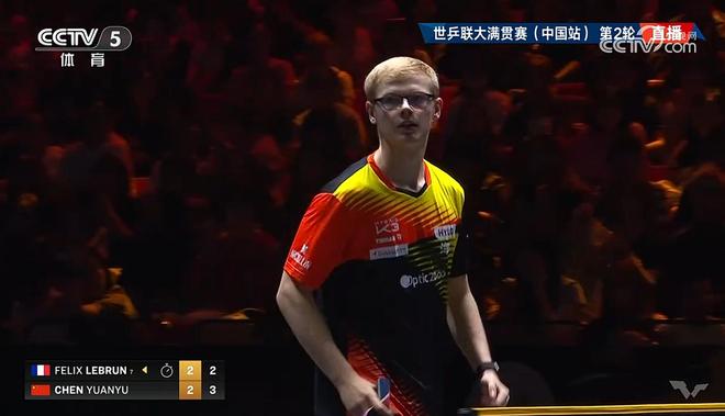 10月1日,WTT中国大满贯男单1/16决赛,陈垣宇决胜局浪费了一个赛点,最终以2-3(3-11、11-4、11-5、8-11、10-12)不敌F-勒布伦,无缘男单16强。 |
