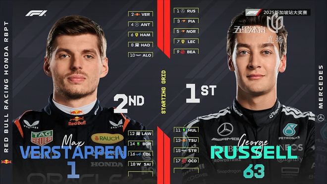 昨晚的排位赛无疑给全世界带来了惊喜!拉塞尔获得杆位,维斯塔潘紧随其后同样在头排发车,皮亚斯特里第三位起步,而排在第四的是同样来自梅奔车队的“小kimi”安东内利。而法拉利双雄于第6和第7位起步,在他们身前是麦克拉伦的诺里斯。