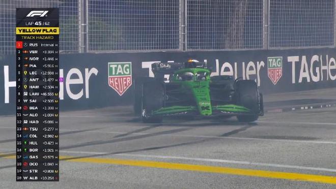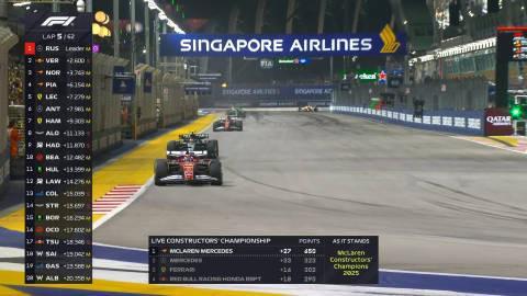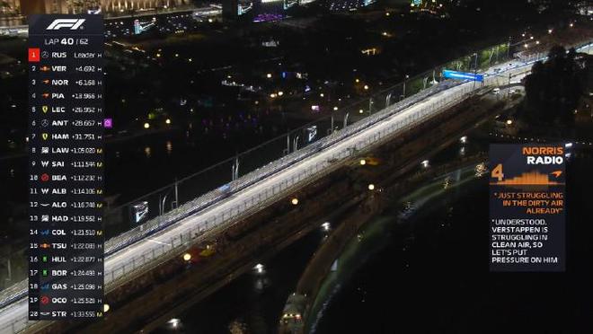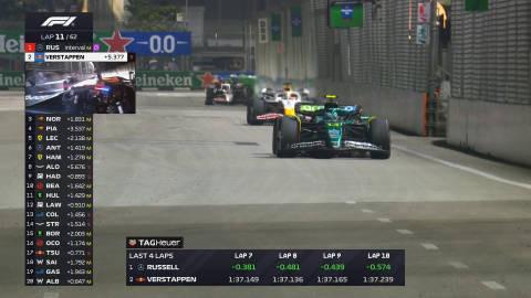 F1新加坡站正赛:拉塞尔杆位夺冠,维斯塔潘亚军,迈凯伦三四