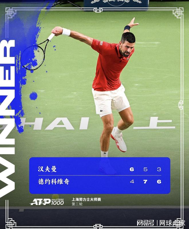 昨天,上海大师赛第三轮夜场中心球场的灯光下,38岁的德约科维奇正在书写又一章传奇。面对从资格赛突围的德国选手汉夫曼,他在首盘4-6落后的逆境中,展现出了24个大满贯冠军得主的深厚底蕴。次盘僵持至6-5的关键时刻,那颗冠军之心再度闪耀,在对手非保不可的第12局完成致命破发,以7-5扳平大比分。