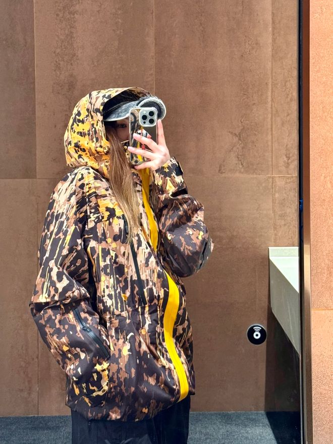 以 “探索边界之外” 为理念,国内年轻户外运动品牌 GAINAX,2025 年为其性能系列雪服设计了全新的配色——迷彩印花“虎皮香蕉”,这款具有迷彩设计感的印花雪服,不但拥有超绝的视觉效果,性能也相当强悍。