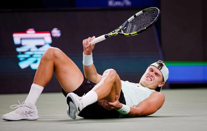 10月12日,上海大师赛,林德克内希突然腿部不适摔下颁奖台。(图/视觉中国)