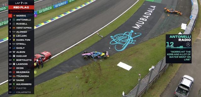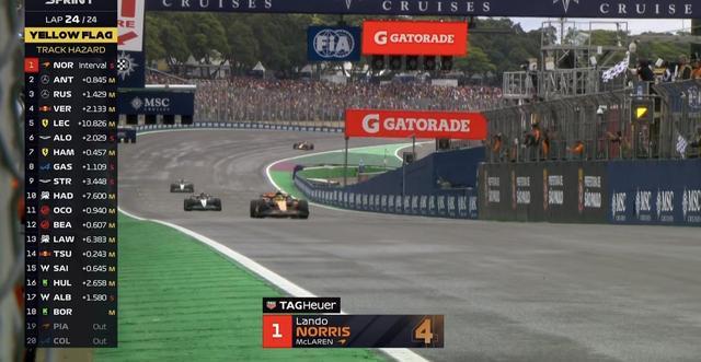 F1巴西站冲刺赛:诺里斯夺冠,安东内利第2,皮亚斯特里退赛