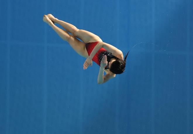 广东队选手林珊在比赛中。新华社发 本场决赛最后出场的三位选手林珊、陈佳和陈艺文都具备争金实力,比赛也进行得十分激烈。四川选手陈佳三轮过后排名第一,林珊和陈艺文分列第二和第三。关键的最后两跳,林珊发挥更胜一筹,尤其是第五跳5152B,五位裁判给出了9.0的高分,从而强势锁定这一项目的金牌。