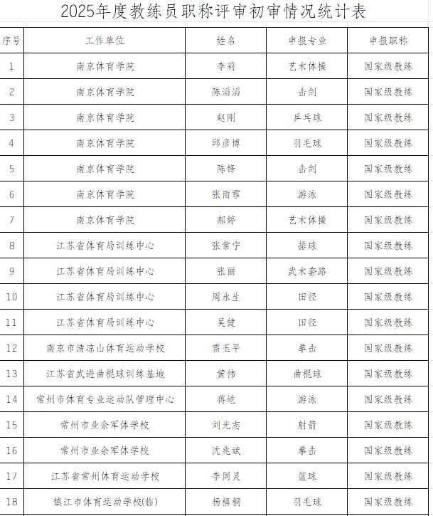 江苏省体育局人事处11月11日发布《2025年体育专业人员职称申报人员名单评前公示》。 其中,申报国家级教练职称名单中,张雨霏、郝婷、张常宁等奥运冠军在列。 据介绍,张雨霏,1998年4月出生于江苏省徐州市,在东京、巴黎两届奥运会中斩获10枚奖牌,是中国奥运史上收获最多游泳项目奖牌的运动员。 郝婷,2001年出生于江苏省盐城市,在巴黎奥运会上携手队友夺得艺术体操集体全能金牌,创造中国艺术体操队在奥运会上的历史最佳战绩。 张常宁,1995年11月出生于江苏省常州市,入选女排国家队后,随队夺得2015年世界杯、2016年里约奥运会、2019年世界杯冠军。 |