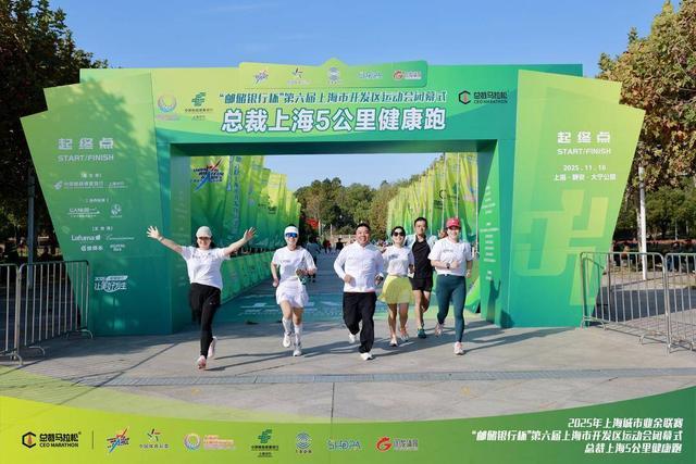 11月16日,伴随着清脆的发令笛声在上海静安区大宁灵石公园响起,2025年上海城市业余联赛“邮储银行杯”第六届上海市开发区运动会在压轴赛事——“总裁上海5公里健康跑”的激情奔跑中圆满落下帷幕。 赛事以 “一起上赛场,人人享健康” 为主题,吸引了六百余名来自上海市各开发区、商会及知名企业的董事长、总裁及高管参与,共同演绎了一场体育与商务深度融合的盛会。