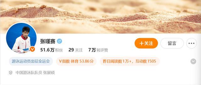 每个人第一次看到张展硕的微博名“张瑾赛”时,或多或少都会有点疑惑,但随着本届全运会张展硕一次又一次地创造出好成绩,反复的粤语播报让大家恍然大悟,“张瑾赛”正是张展硕名字的粤语发音。 虽然暂时不知道张展硕当时究竟是出于什么原因选择了“张瑾赛”作为他的微博名,但是就仿佛命中注定一样,几年前种下的种子在十五运破土而出,让这个18岁的小将在粤港澳这片土地上,成为了全运会5金王。