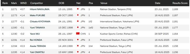放到亚洲的话,12秒81的成绩依然落后于几位日本选手,在今年排名亚洲第五,不过差距很小。