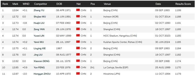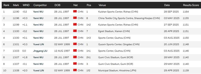 而且,刘景扬的这个成绩也将一跃成为全国现役个人最佳的前三,仅次于吴艳妮和林雨薇曾经跑出过的12秒74。