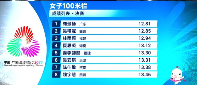 今年之前,刘景扬的最好成绩只有13秒36,在国内属于第二梯队,落后于林雨薇、吴艳妮乃至陈佳敏、夏思凝。