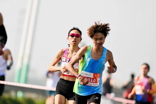 北辰带着张水华一路向前 北辰带人跑也算攒了不少经验,他说,“很多人自己跑,一快一慢会不稳定,而配速在不停上下跳动最累。而我带着会力求保持稳定,肯定不能乱来。” 半程过后,王岢掉队,但张水华依旧专注向前。这是她第二次来常州,去年比赛时,她觉得这里气温有点冷,对从南方来的她不太友好。她一直觉得,自己怕冷不怕热。而今年,气温比去年要高一点,虽然也有风,但一切在掌控中。 纵然张水华在半程后看了一眼手表,大概知道是114-115左右的用时,但她没想自己能跑到230。反而是北辰,从出发后就观察到——张水华状态特别好,后半程还能加起来。“很多人30公里过后百分百要掉速,但她没掉,真是太可怕,太不可思议了。”大学还没毕业的他被张水华的好状态所折服。