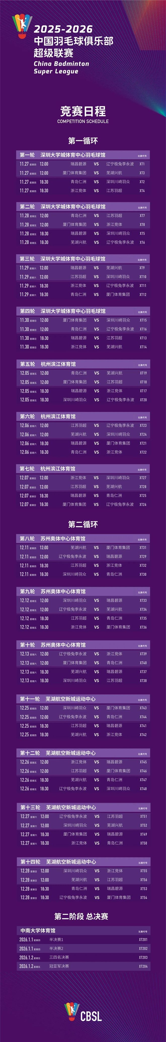 2025-2026李宁·中国羽毛球俱乐部超级联赛于11月底正式挥拍,为期五周的赛事将以全新的姿态登场,在计分制、外援阵容、乃至再次迎来新冠名方面都新意满满。