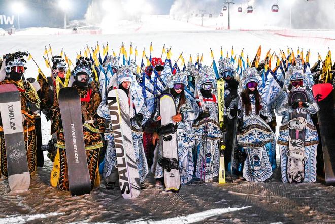 第三帧:11月21日晚,吉林中旅松花湖度假区,266名滑雪者身着色彩斑斓的京剧戏服、头戴脸谱,组成整齐队伍自雪道飞驰而下,创吉尼斯“最多人穿京剧服饰滑雪一公里”纪录。次日,吉林省新雪季正式开板,预计迎接1.8亿人次。